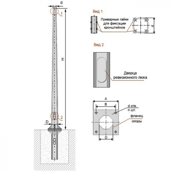 Опора имеет разную толщину стенок: внизу толще чем в верхней части, это уменьшает вес конструкции, что облегчает процесс транспортировки, снижает её себестоимость.