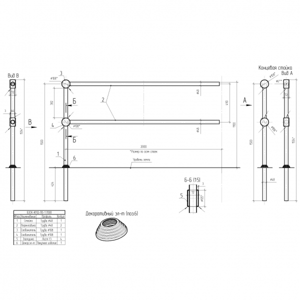 Перильное ограждение изготавливается из круглой или профильной стальной трубы, круга или полосы. Конструкции ограждений подразделяются в зависимости от способа изготовления: модульные, литые, сварные, болтовые, комбинированные. Форма и внешний вид ограничения зависят от заказа.
